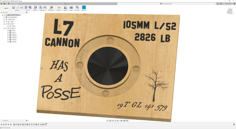 That is a real slice of a 105mm tank gun barrel, and the wood is Summer Hill Tree! (RIP)