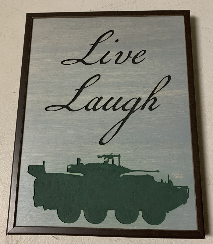 | It's a fine day to be a Dragoon! Show some regimental pride with the regimental toast superimposed on a Leopard 1 tank outline. Usually made from ash, these pieces show a lot of grain and really pop.