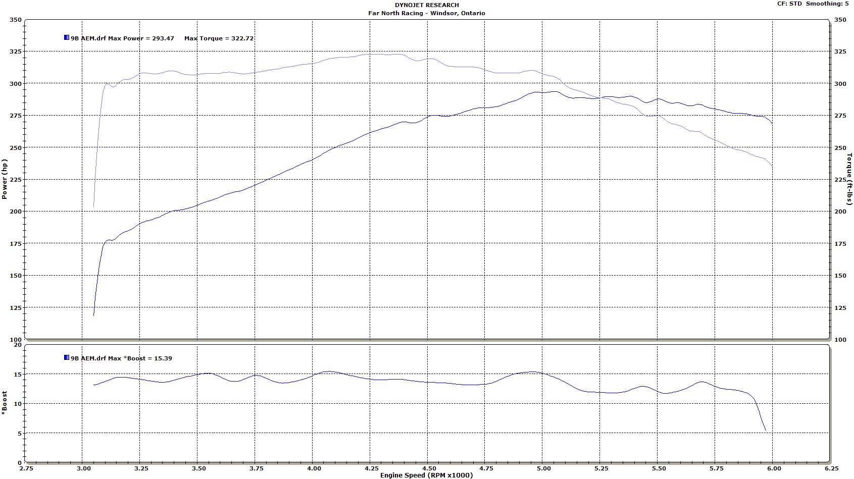 So I had Marco from Magnus Motorsports install the AEM EMS, and I got him to tune the WOT portion of the fuel map on his dyno. Here is the result: