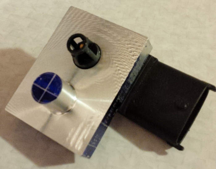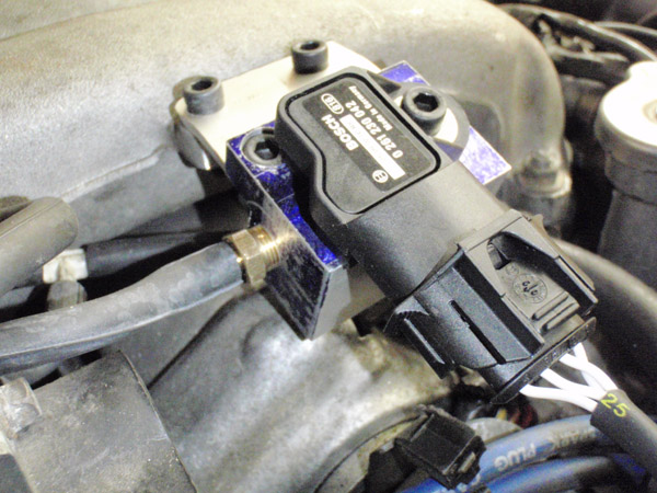 So way back when, I fabricated this simple block to house the Bosch MAP/AIT sensor and provide a boost pressure reference: