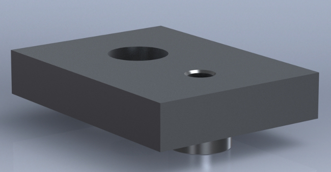 Here's the more important view, showing the sensor probe just peeking through the adapter plate. The boss got cut down substancially for the production version.