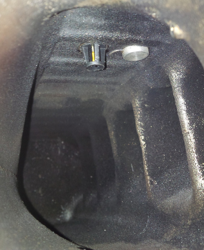 And here is what it looks like inside the manifold. The sensor plug extends nicely into the plenum, and the boss doesn't stick out enough to hurt airflow through the manifold.