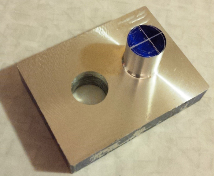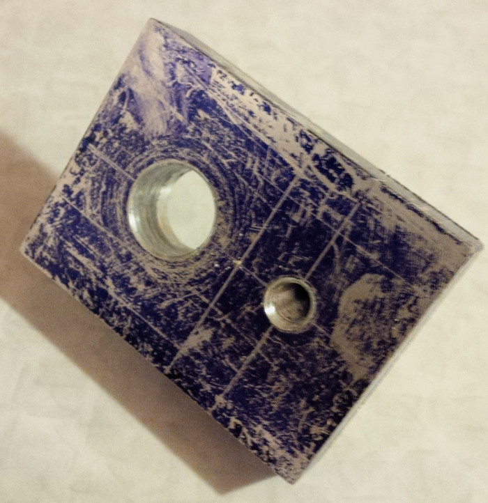 Next came drilling the two mount holes - one for the sensor probe, and one for the boss.