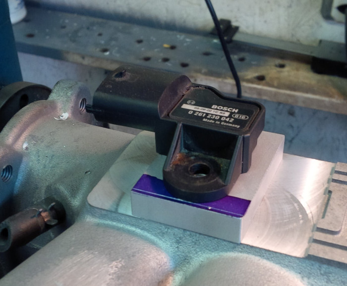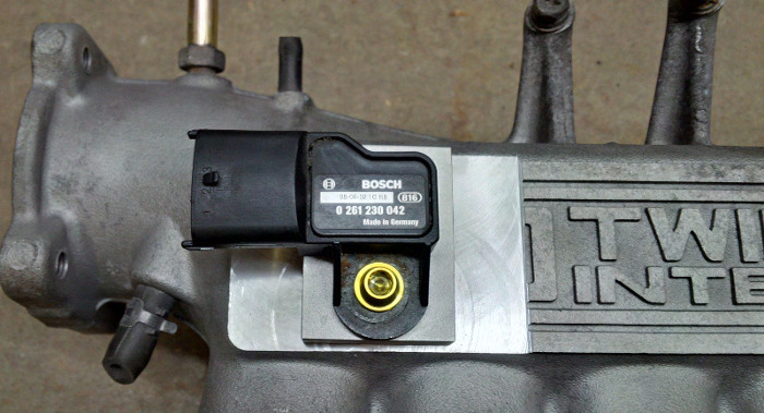 It is a very clean and compact sensor, but the catch is that 12mm bore. The OEM manifold is not thick enough to be able to provide that bore - nor is it thick enough to house the hold-down screw. So what we need is an adaptor plate that provides enough depth to establish the sealing bore, plus house the hold down screw without penetrating into the manifold plenum and requiring sealing the threads somehow.